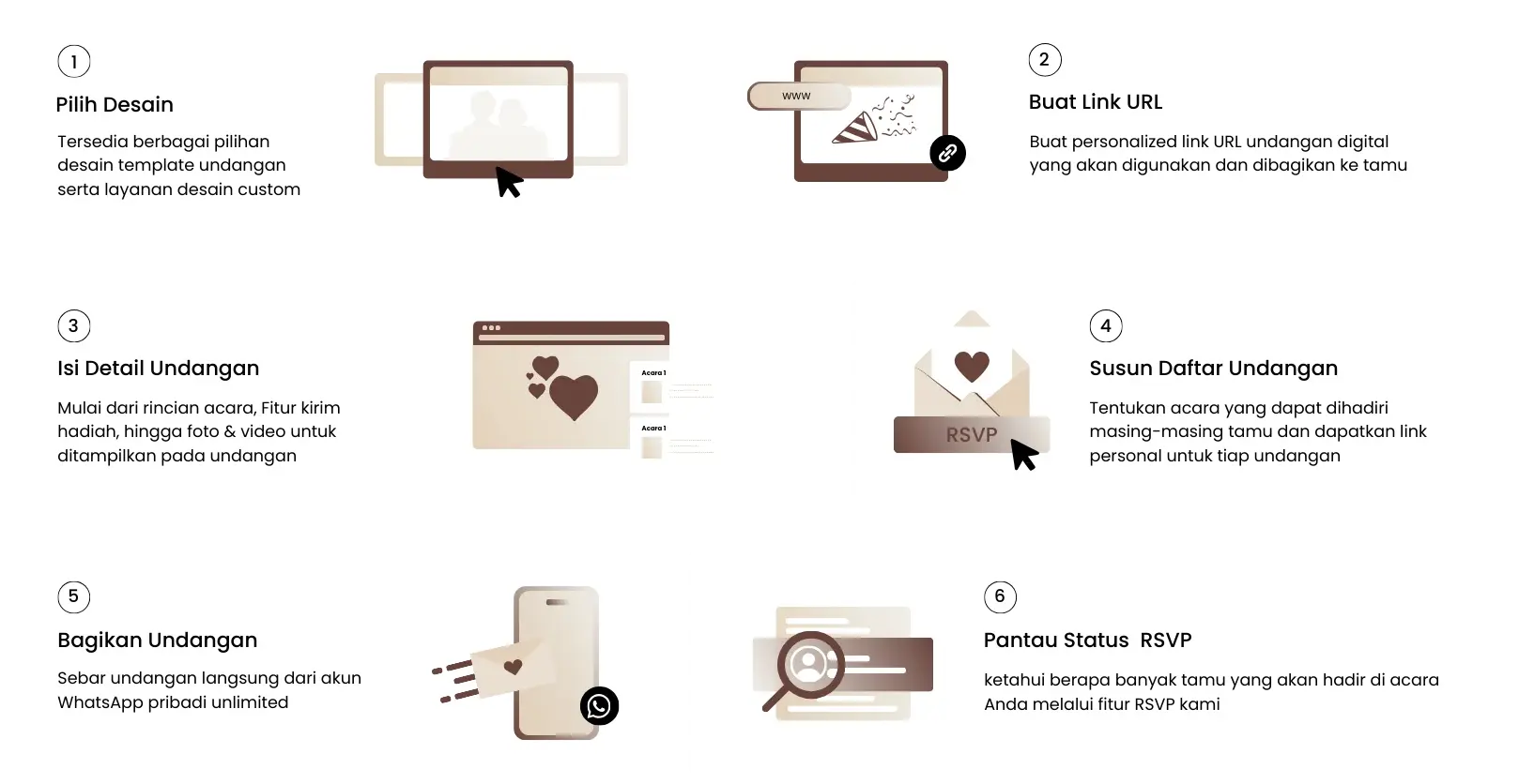 menyediakan template undangan digital yang instan, mudah digunakan, dan dapat disesuaikan dengan konsep acara Anda.